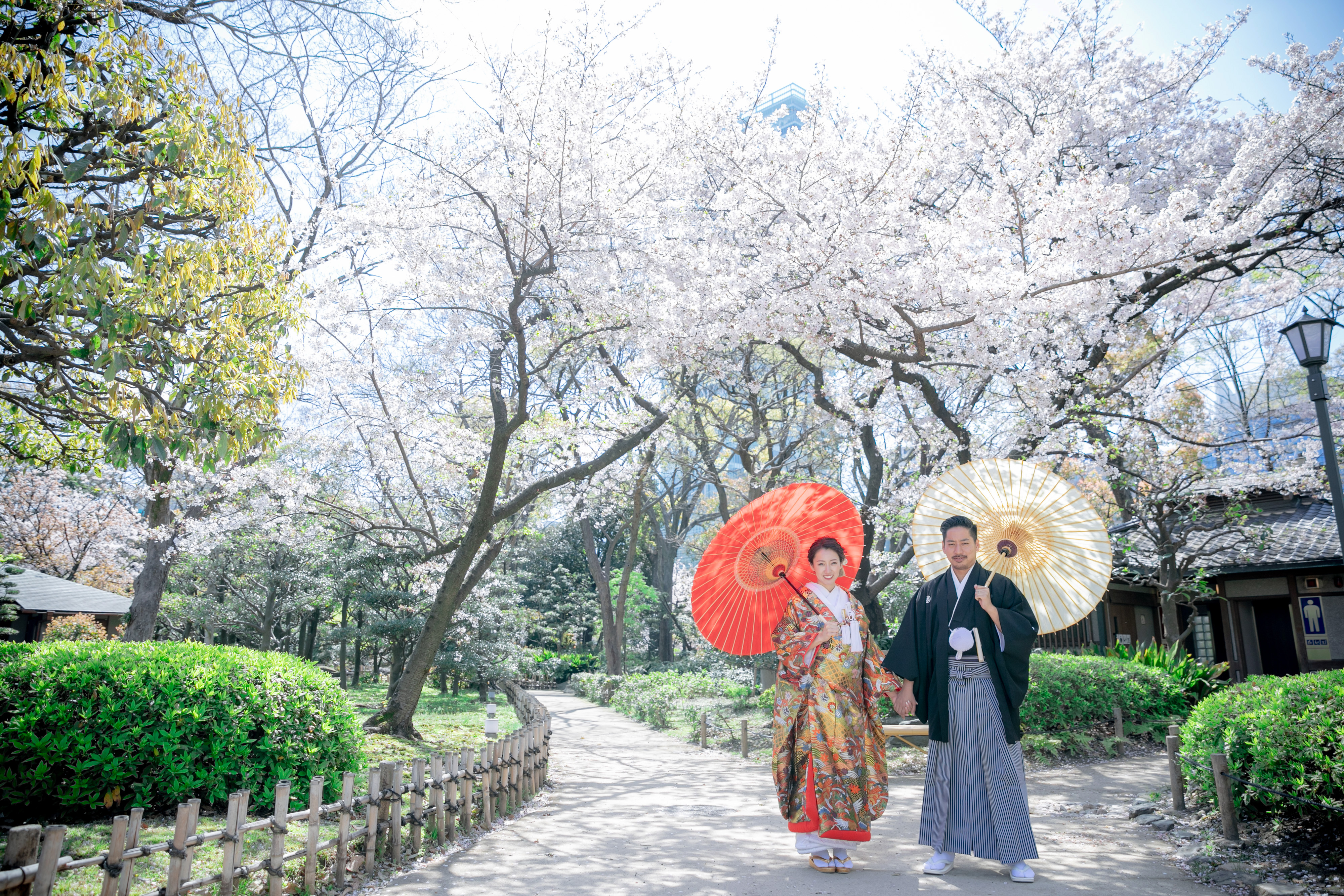 庭園の景色と桜で 和装を存分に楽しめます♪