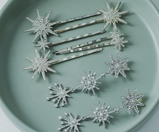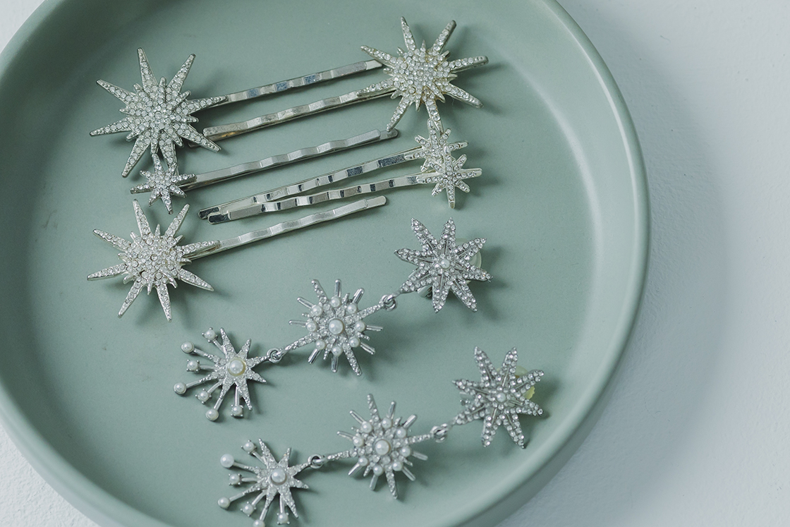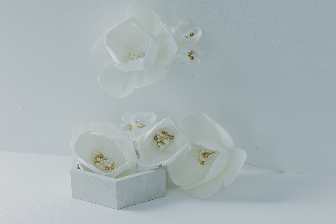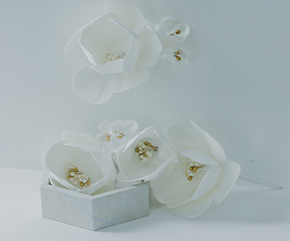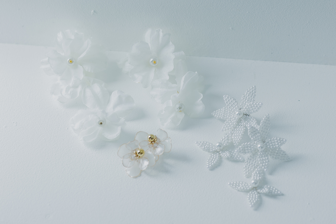 ヘアスタイルの仕上げに、華やかなモチーフをプラス。