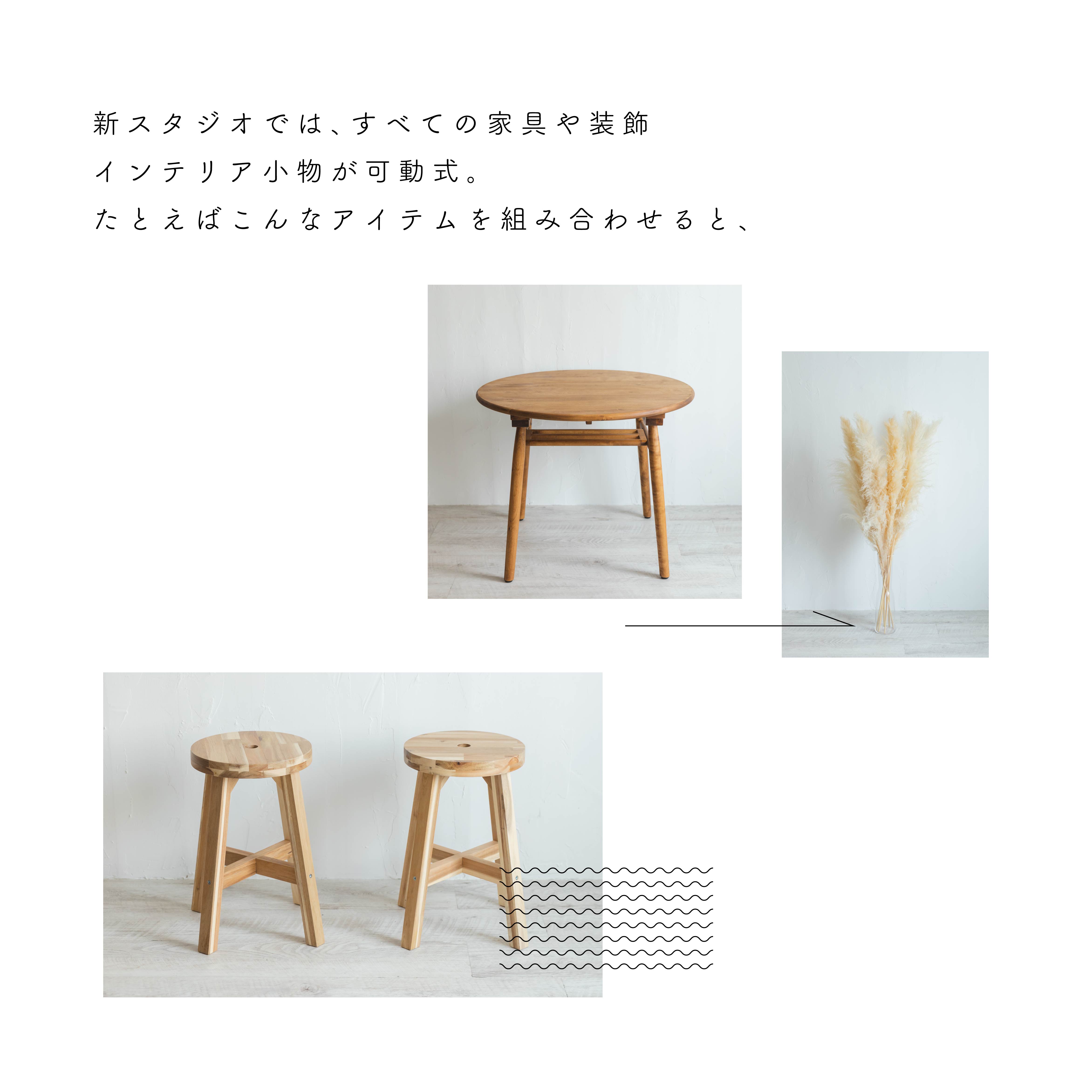 スタジオ内には、ナチュラルなファニチャーを