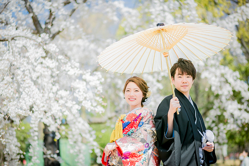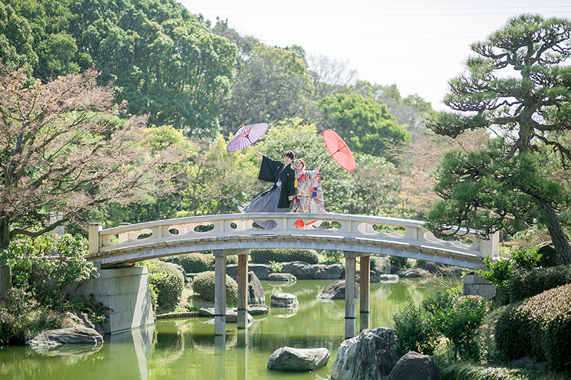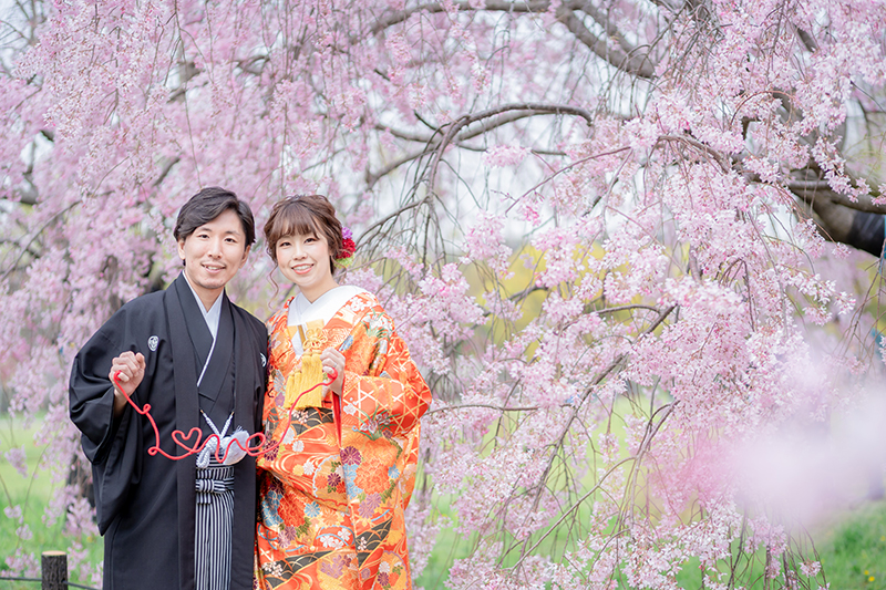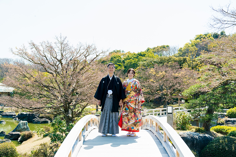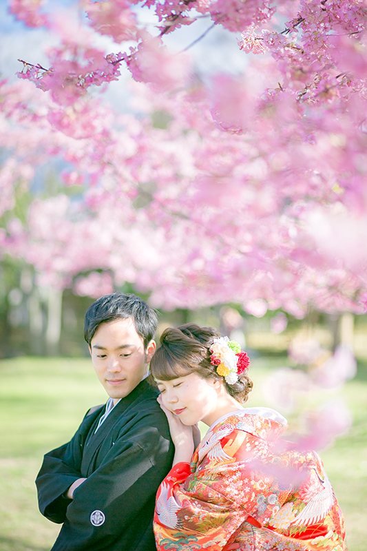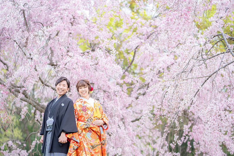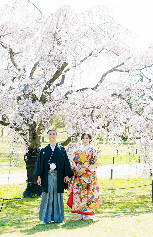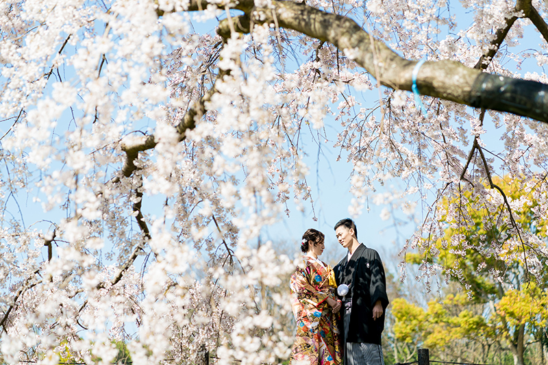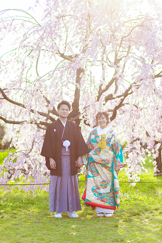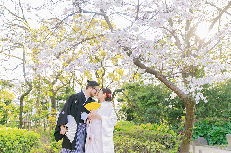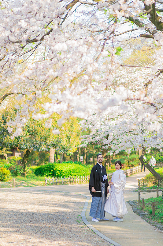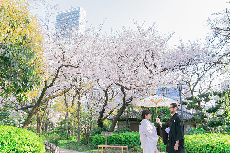 庭園の景色と桜で 和装を存分に楽しめます◎