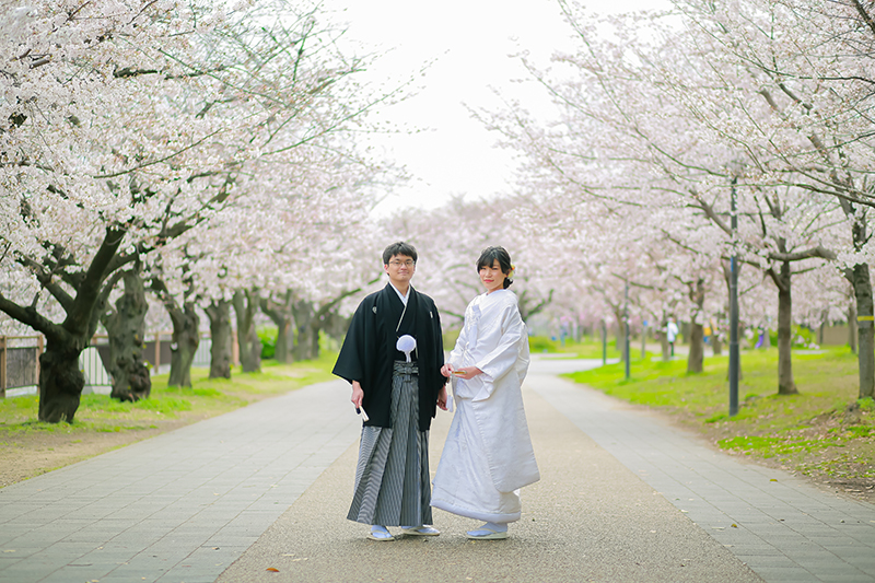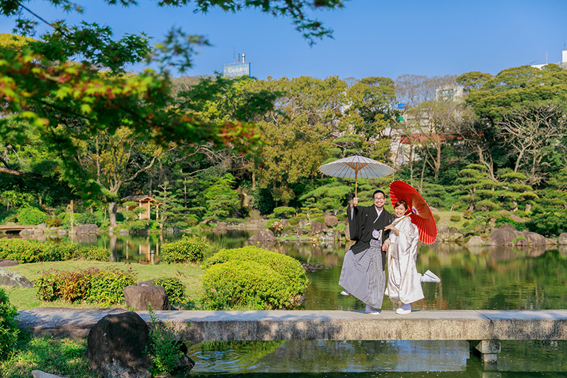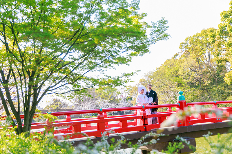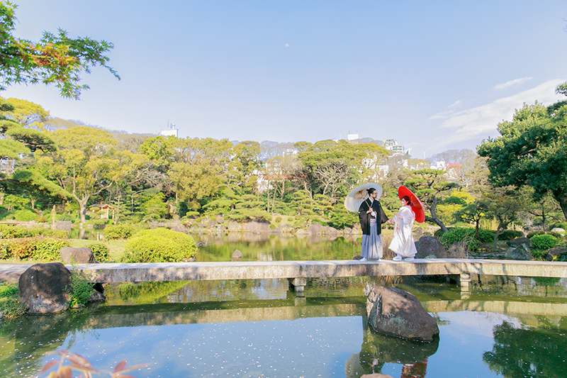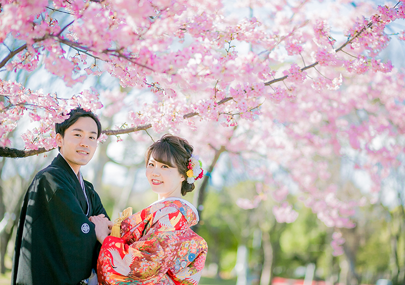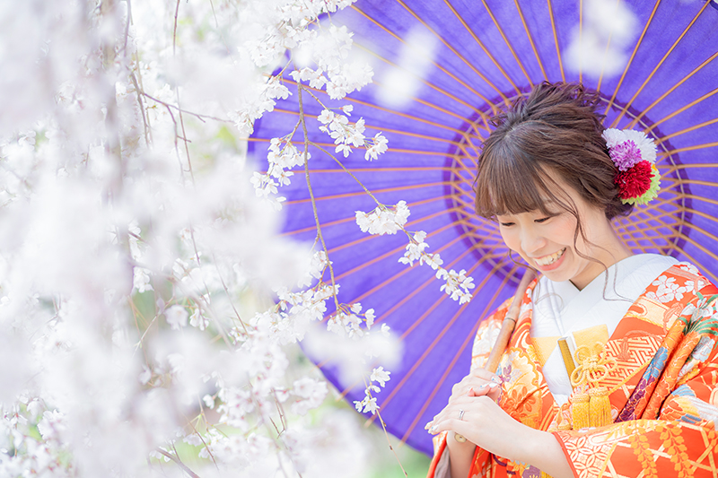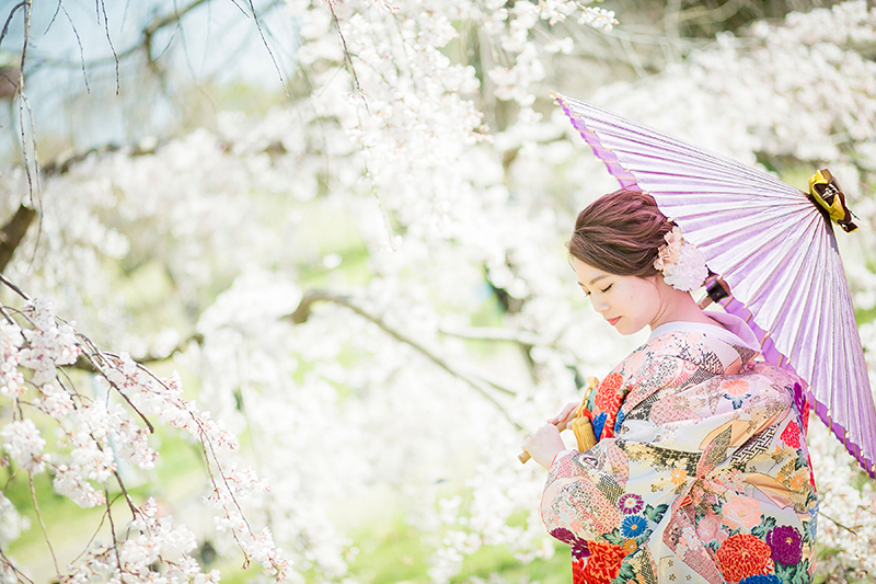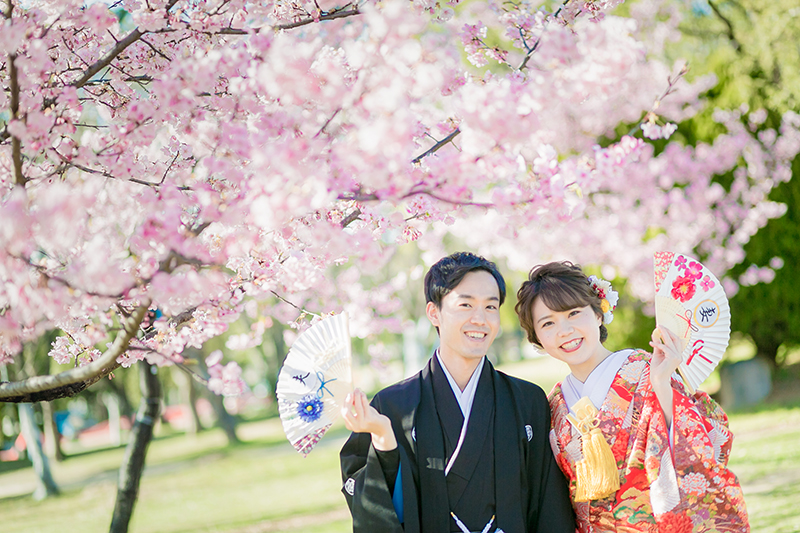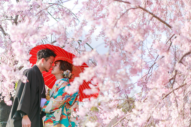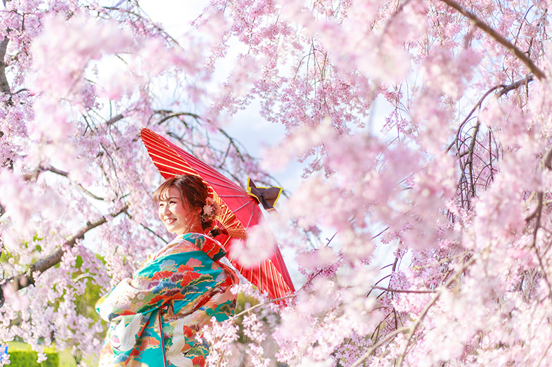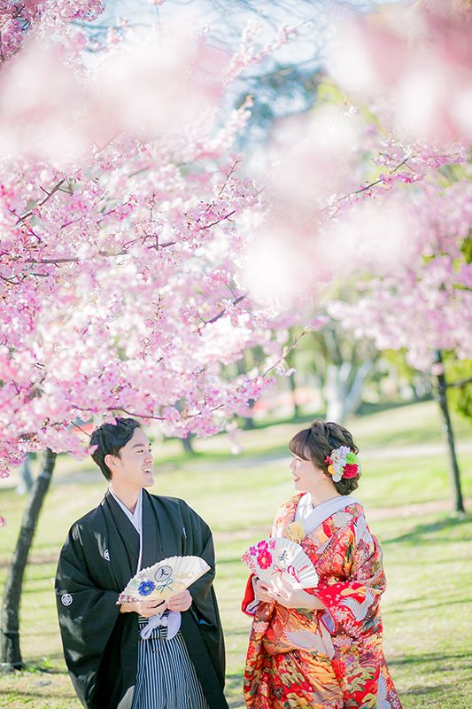 庭園の景色と桜で 和装を存分に楽しめます◎
