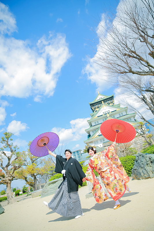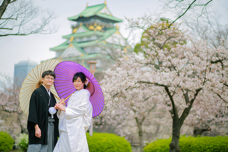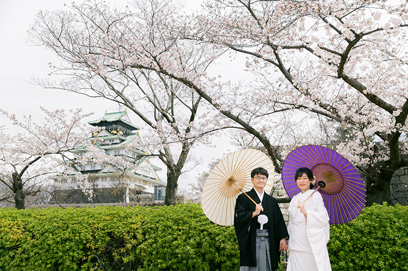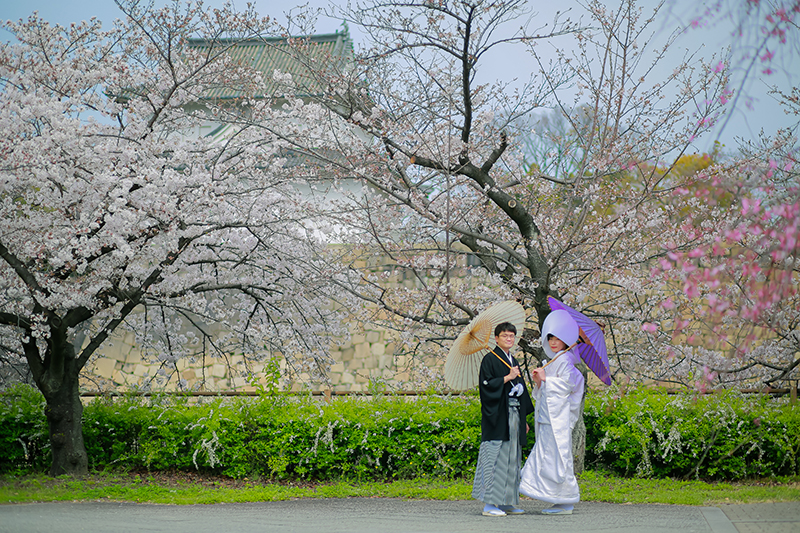 大阪城公園内に咲く桜を交えながら撮影可能◎