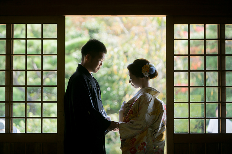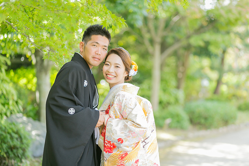 1年を通して 緑が楽しめる、美しい庭園に、華やかな和装姿のお二人に うっとり♡