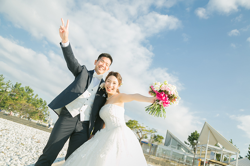 海沿いの爽やかなロケーションに、絵になるお二人♡♡