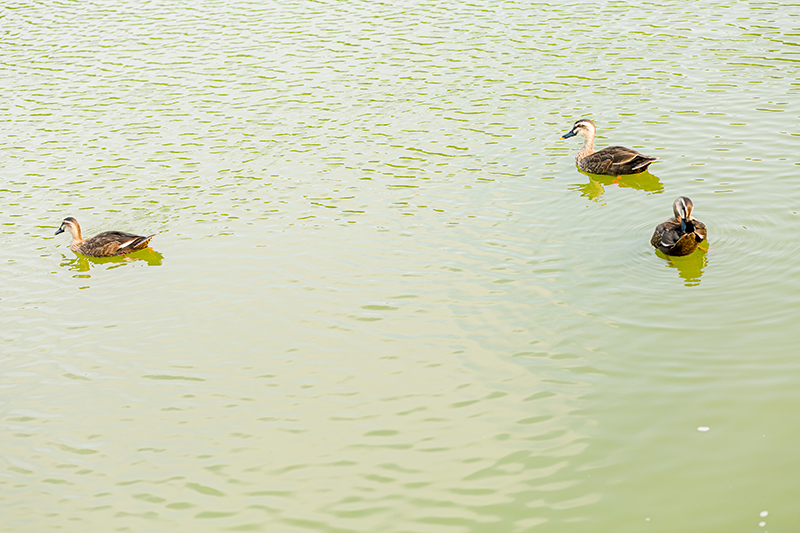 お二人が見つめる向こうには、鴨さんたちが