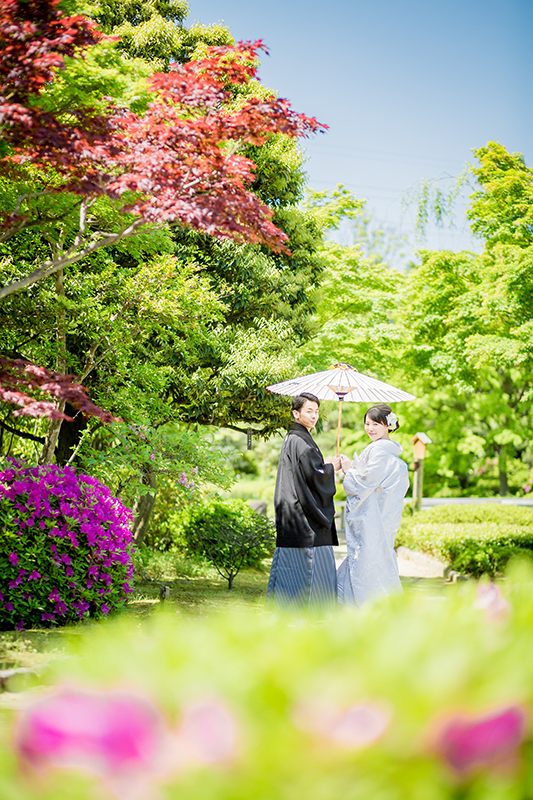 この季節感溢れる風景が、晴れ姿のお二人を