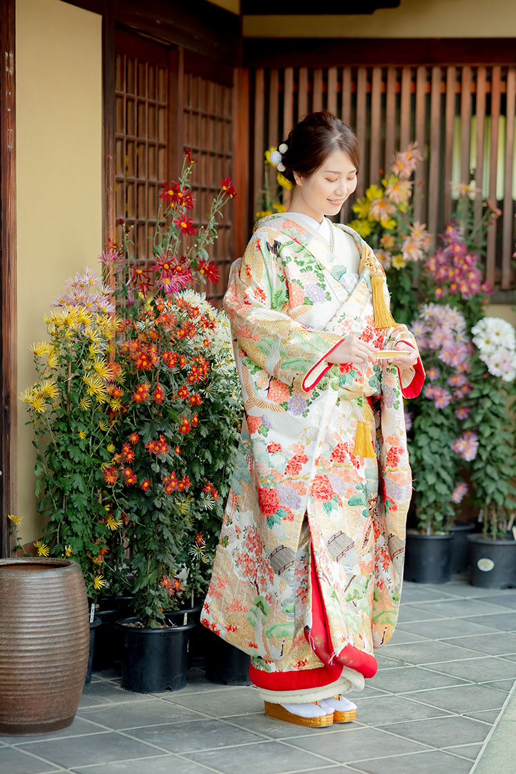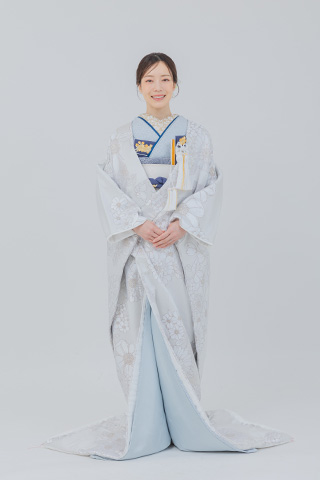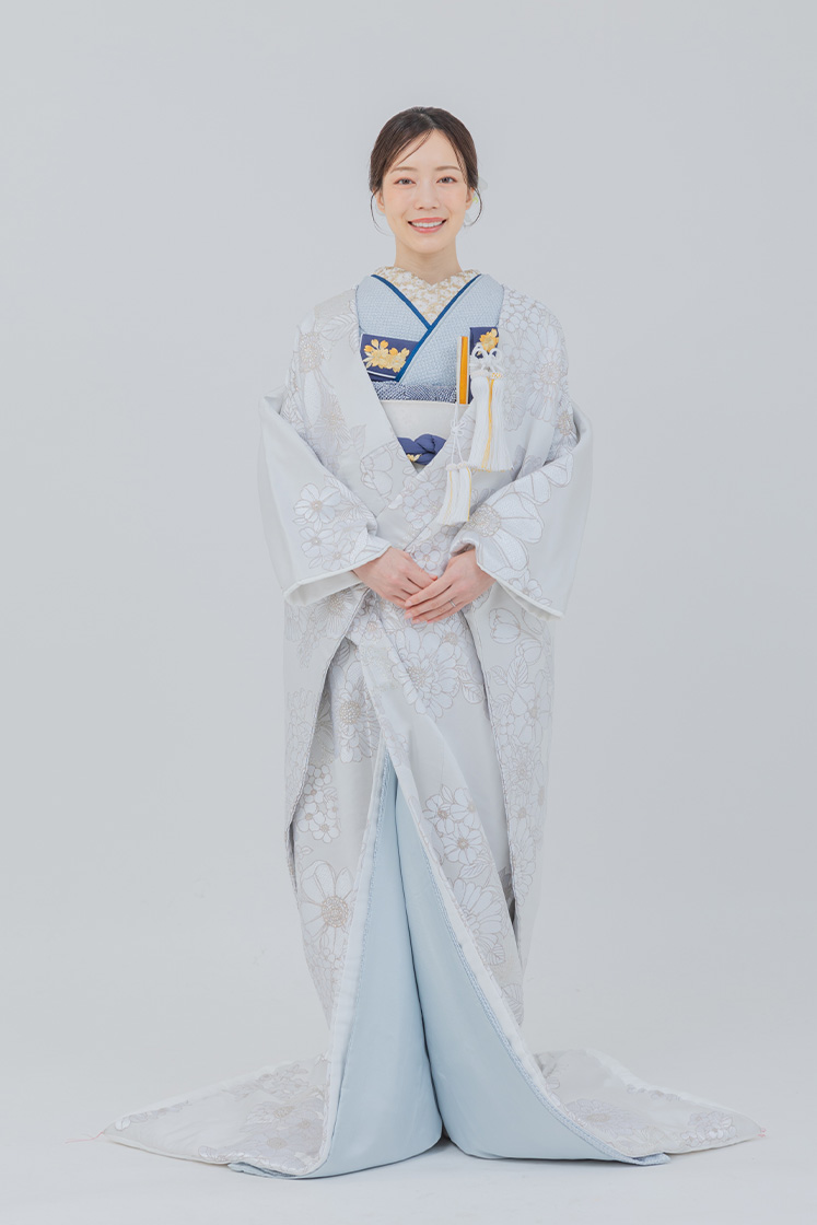 白地に銀の刺繍がきらめく正統派の白無垢。